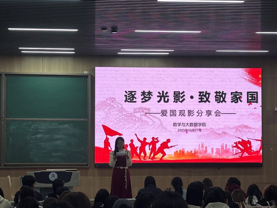 为厚植同学们的爱国情怀,传承红色基因,数学与大数据学院易班工作站于10月21日晚上7点,在明德楼B112教室举办了一场以“爱国”为主题的线下观影分享会。