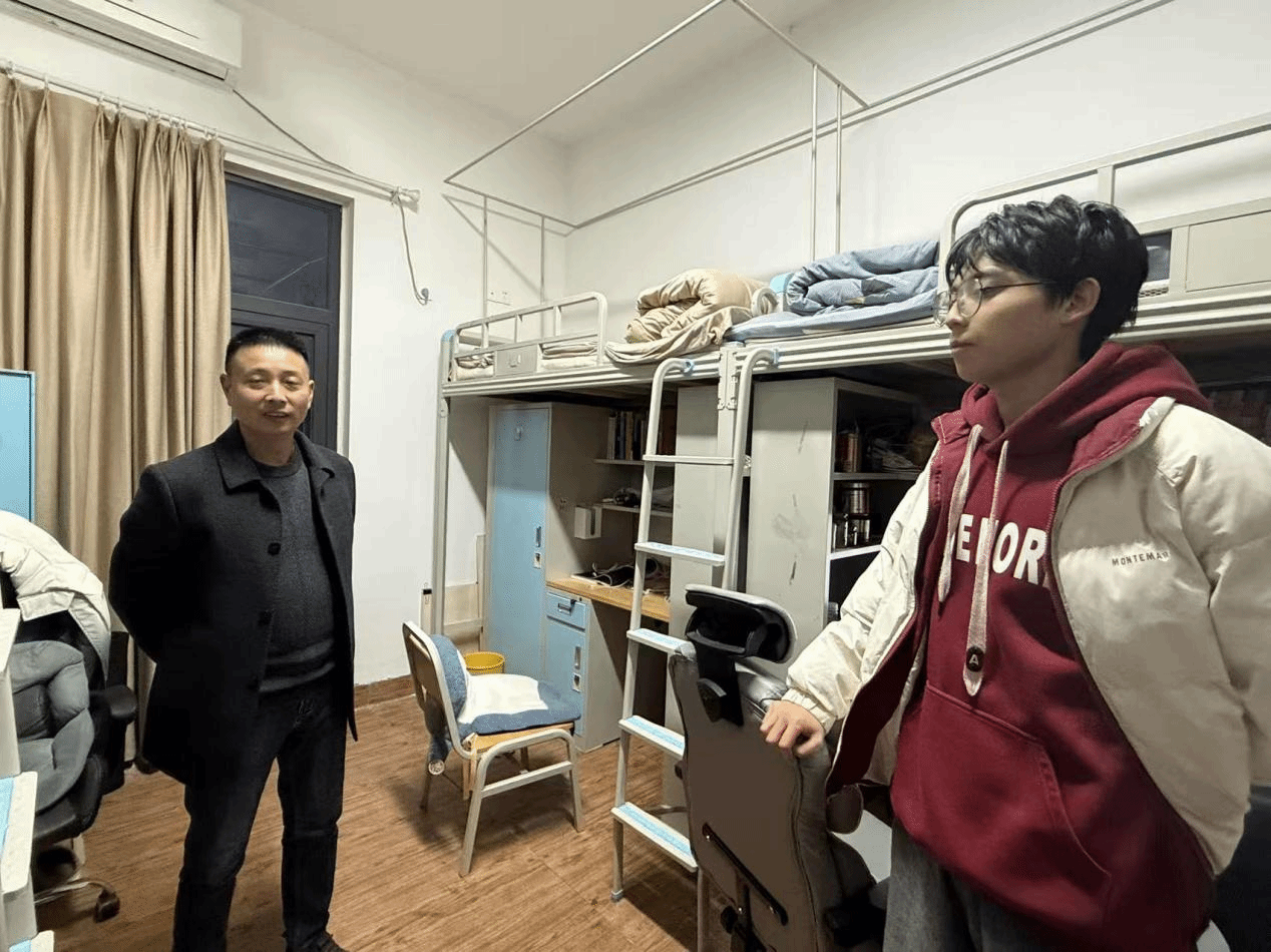 活动中,童处长结合金融数学专业的学科特性与就业发展方向,勉励同学们坚定专业选择。童处长谈到,金融数学融合了数学建模与金融分析的核心能力,是金融领域发展的重要支撑,同学们应深耕专业知识,打好数学与金融的双重基础。同时,童处长真诚地表示,会将同学们当作自己的孩子看待,若大家在校园生活中遭遇不公待遇,可随时向他反映,他会全力为同学们排忧解难。针对金融数学专业学习中可能遇到的金融相关疑问,他也邀请同学们前往其办公室咨询,将结合自身财务工作经验为大家细致解答。随后,童处长还深入学生寝室了解学生的生活情况。
