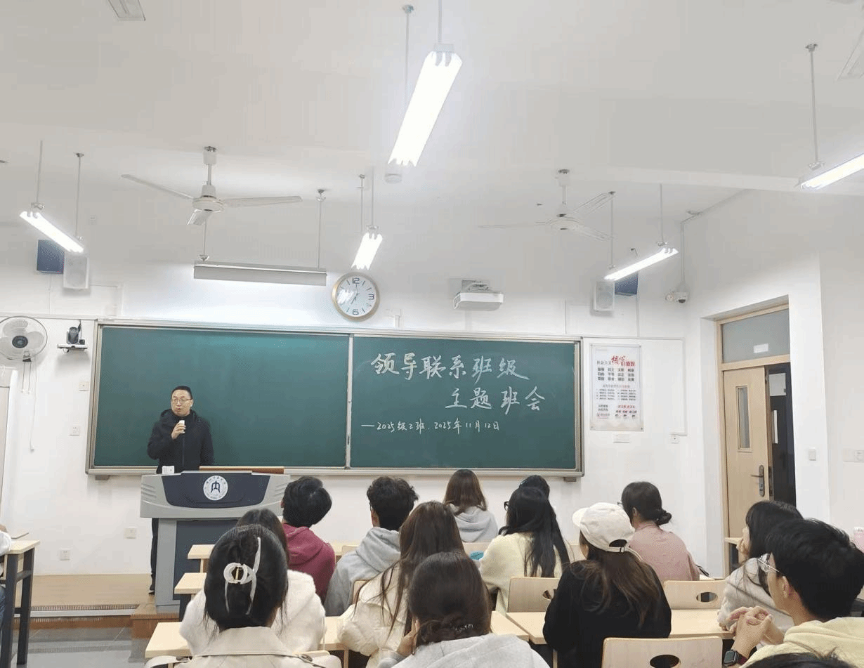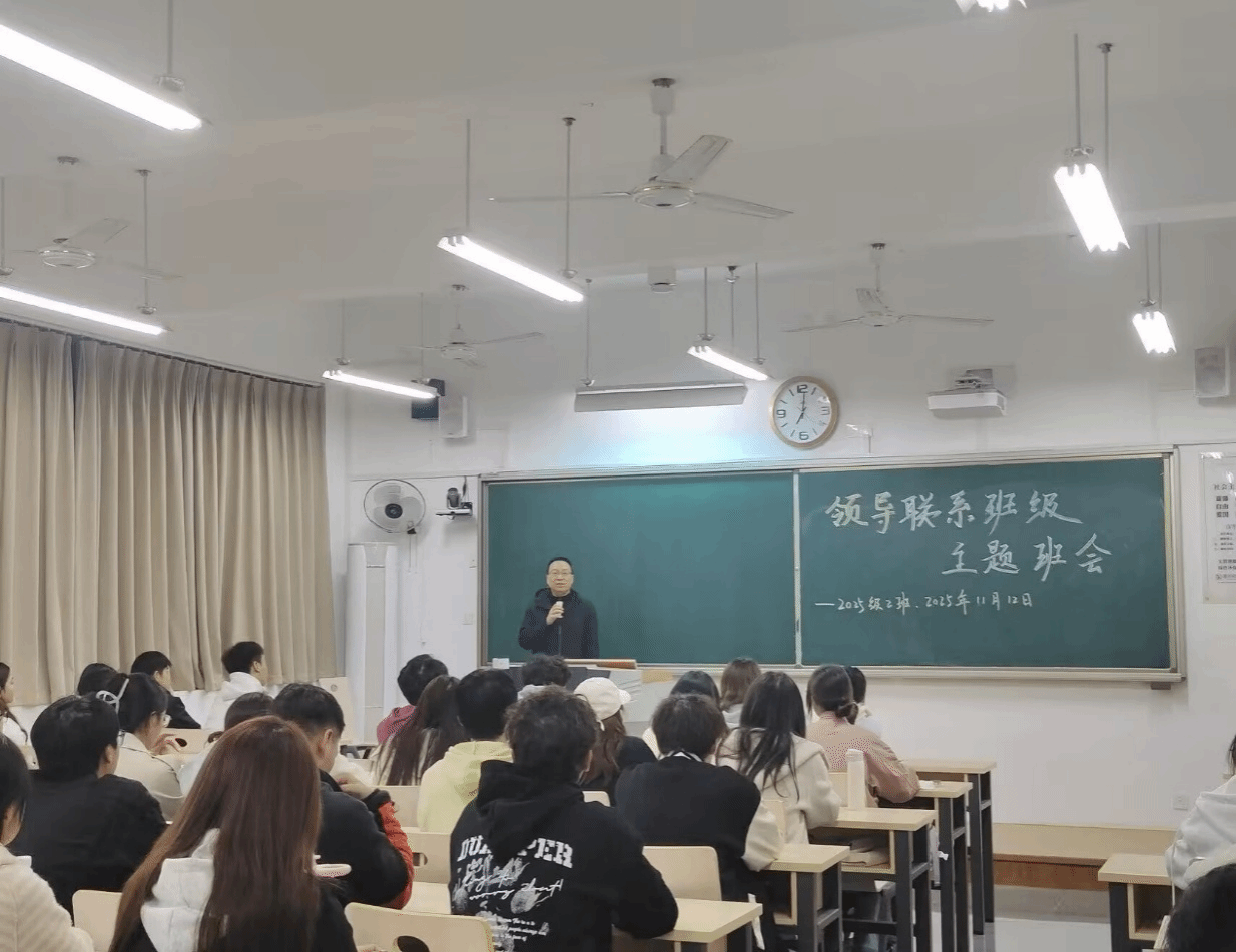 为进一步帮助学生夯实学业基础,明确学业发展重点,科学推进学业提升,2025年11月12日晚上19:00,数学与大数据学院院长龚小兵走进明德楼A402教室,为2025级2班全体同学带来了一场“深耕学业”主题班会。班会紧扣学生学业成长需求,以学业引领为核心,为同学们的大学学业之路筑牢前行根基。