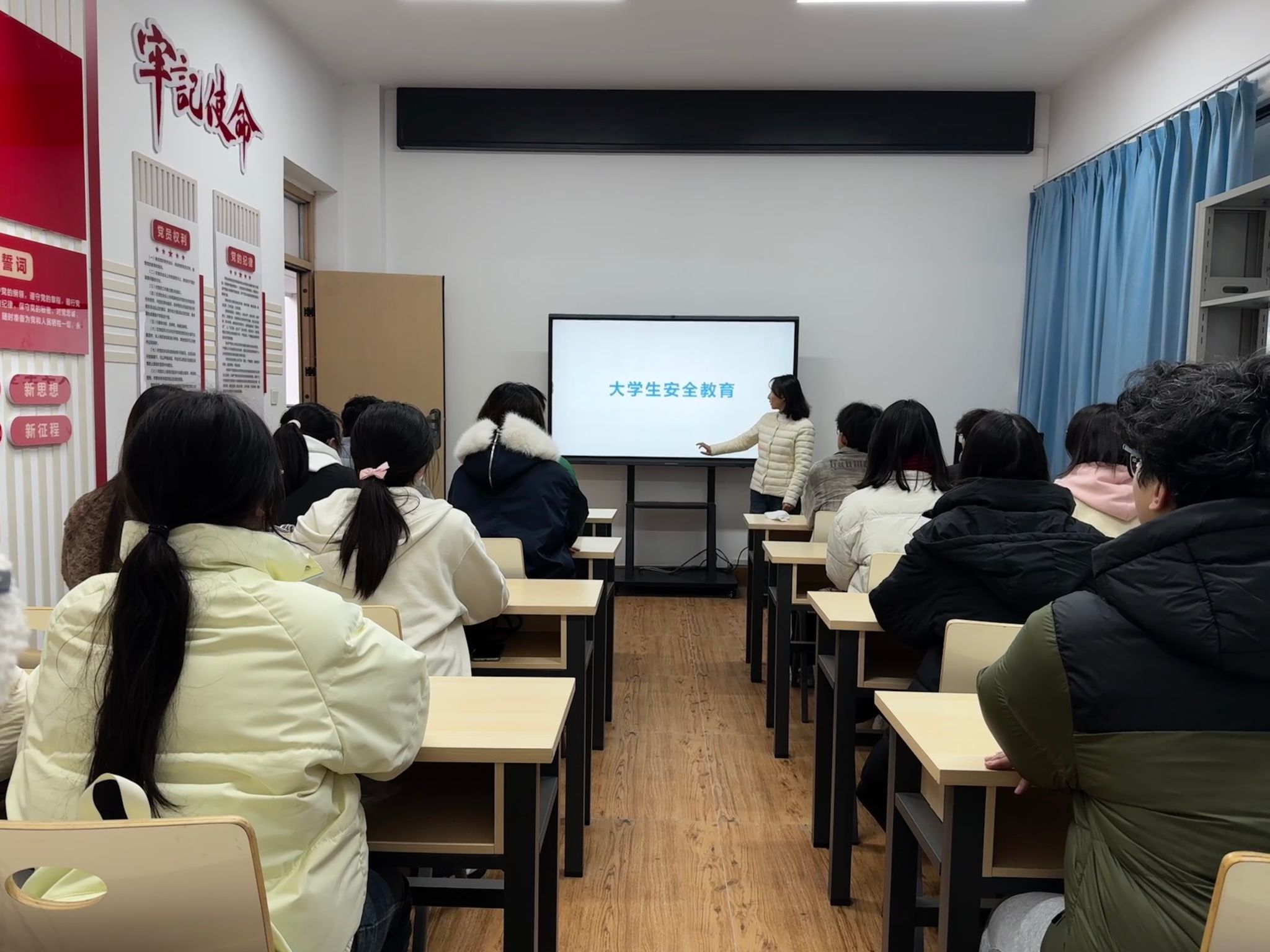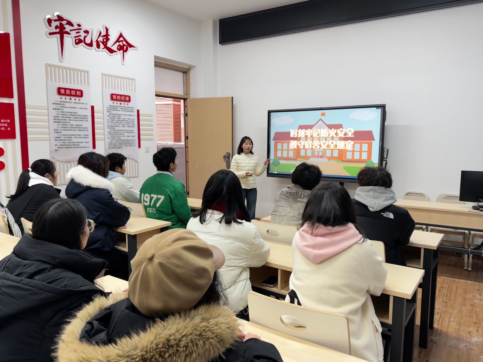 为深入贯彻安全理念,扎实推进消防安全月宣传教育工作,切实强化学生寝室安全防范意识,筑牢校园安全防线,2025年11月28日,数学与大数据学院辅导员李佳美老师在学院党团活动室20-3B232组织开展寝室安全教育活动,各班寝室代表悉数参与。
